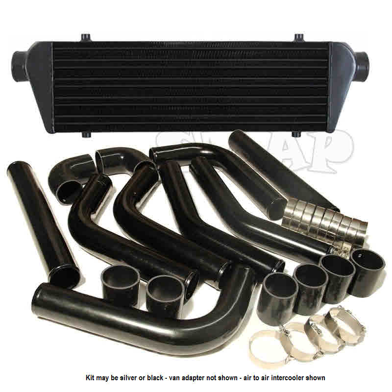 1. As described above for the van only - a special adapter and modified crossover manifold section for front or rear piping and 27 inch by 7 inch tall intercooler as shown.